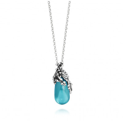 Il pendente Goccia Mare è una creazione artigianale che celebra l’eleganza della natura marina. Un raffinato elemento in argento 925, realizzato con la tecnica della fusione a cera persa e ispirato alla forma di un anemone, accoglie un cristallo azzurro tagliato a goccia, che richiama la purezza delle acque oceaniche. La composizione è completata da una catena rolò diamantata in argento della lunghezza di 45 cm.