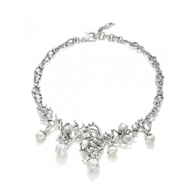 Collezione Mari del Sud - L'argento fluisce in forme coralline e si sposa con le perle naturali d'acqua dolce dai riflessi bianco opalescenti.