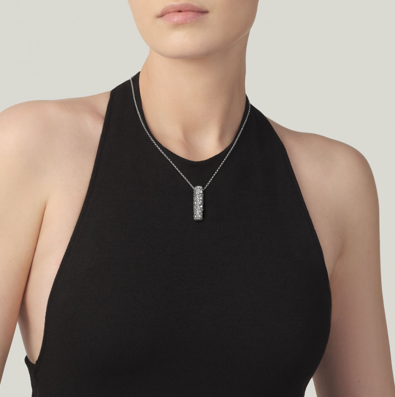 Il pendente Petit Perlage Piccolo è una celebrazione dell’arte della fusione a cera persa, espressione di maestria artigianale e design sofisticato. La raffinata diamantatura del pavé, composta da piccole sfere in argento brunito, dona un delicato gioco di luci, creando una texture contemporanea ed elegante.