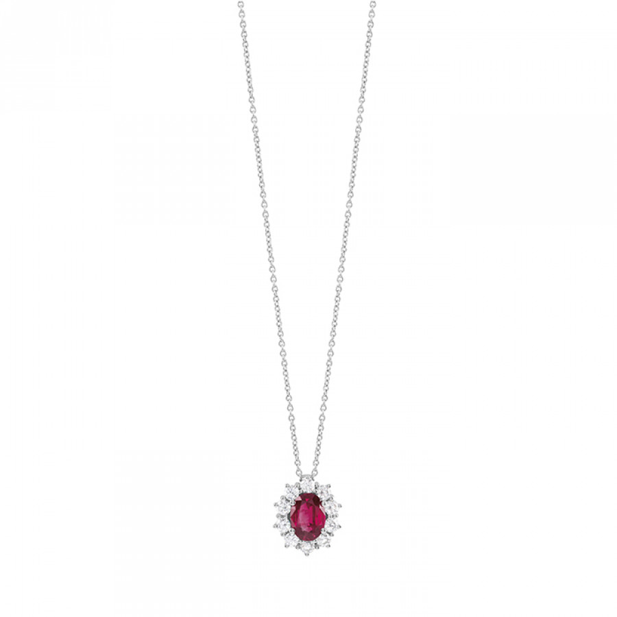 Collana in oro bianco, rubini e diamanti della collezione Salvini Love for color