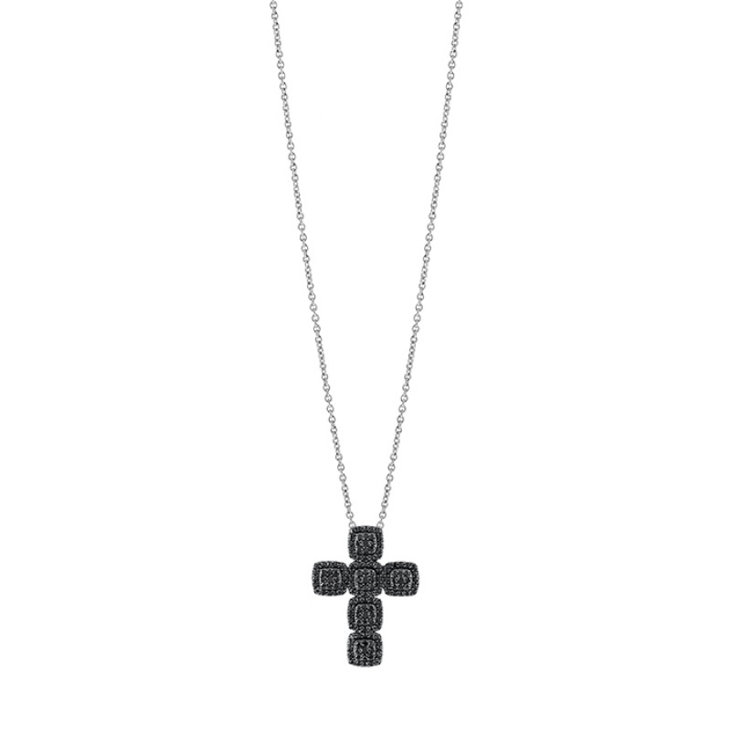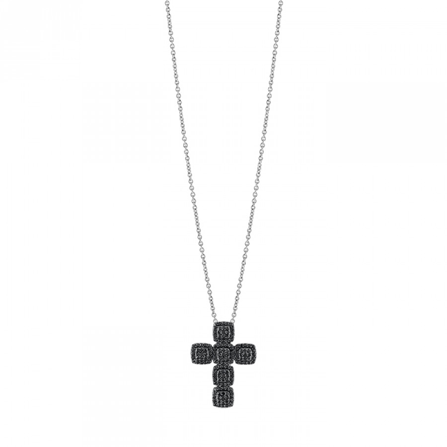 Collana Bagliori Croce in oro bianco e diamanti neri