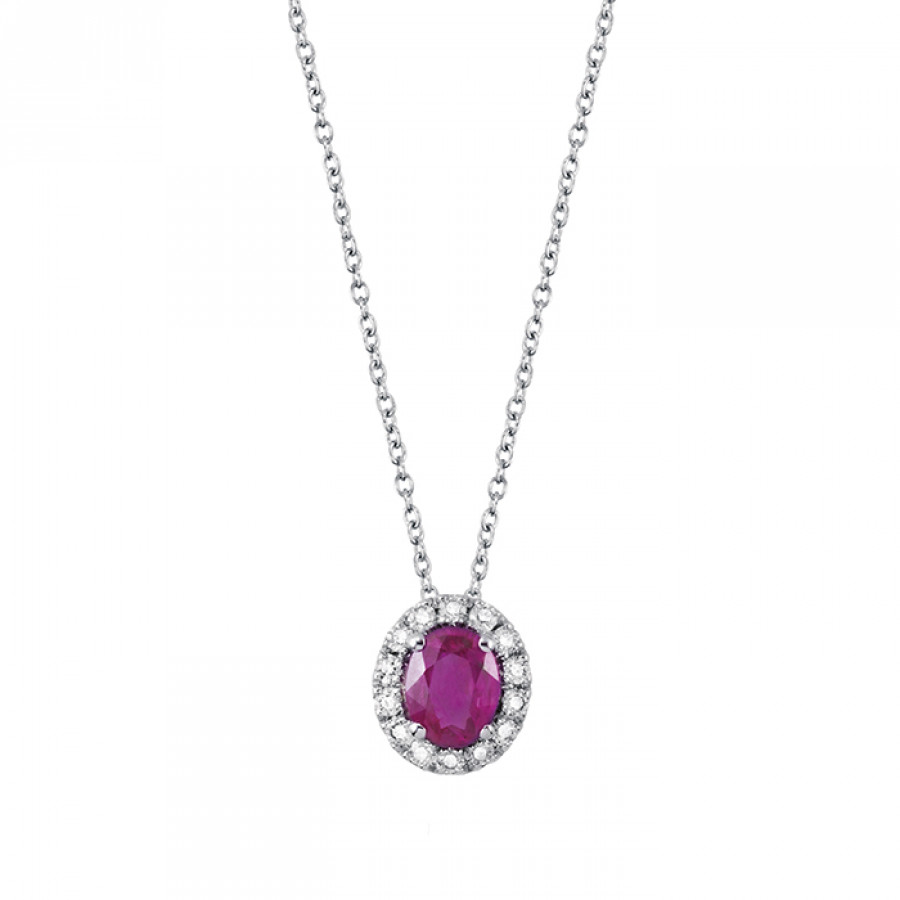 Collana in oro bianco con diamanti e rubini, della collezione Dora di Salvini.