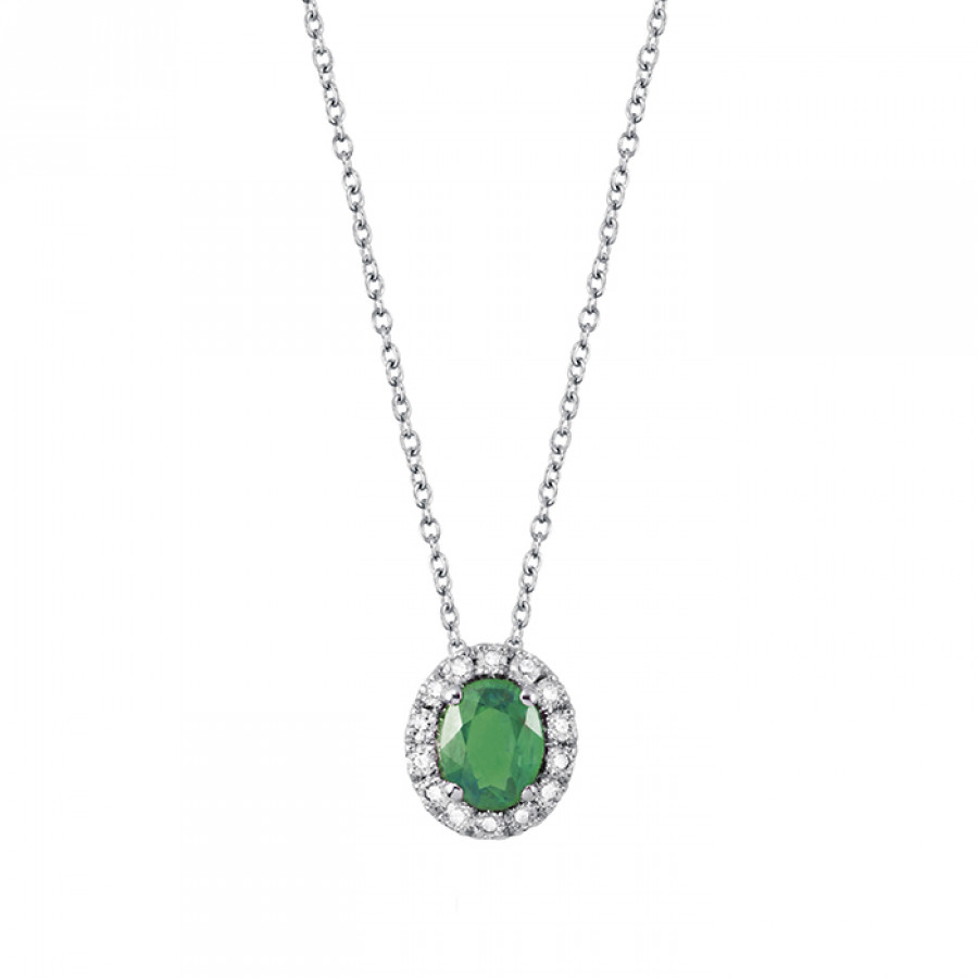 Collana in oro bianco con diamanti e smeraldo, della collezione Dora di Salvini.