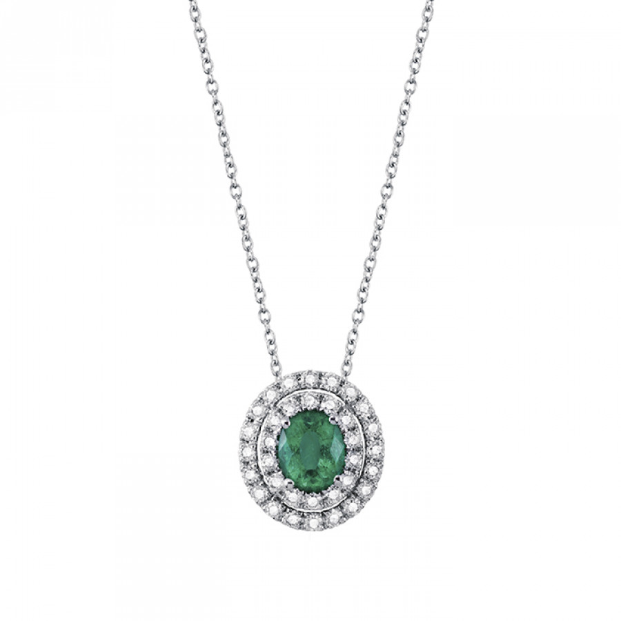 Collana in oro bianco con diamanti e smeraldo, della collezione Dora di Salvini.