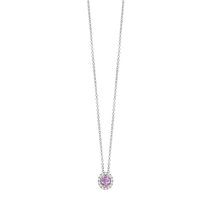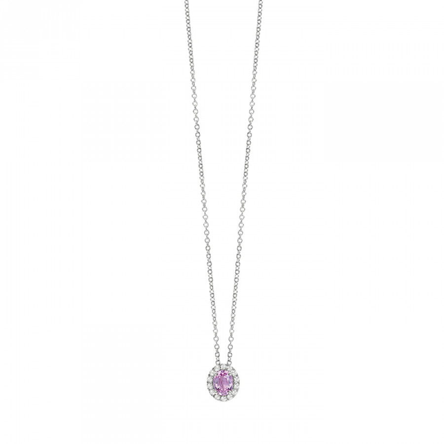 Collana Salvini in oro bianco con diamanti e zaffiro rosa, della collezione Dora