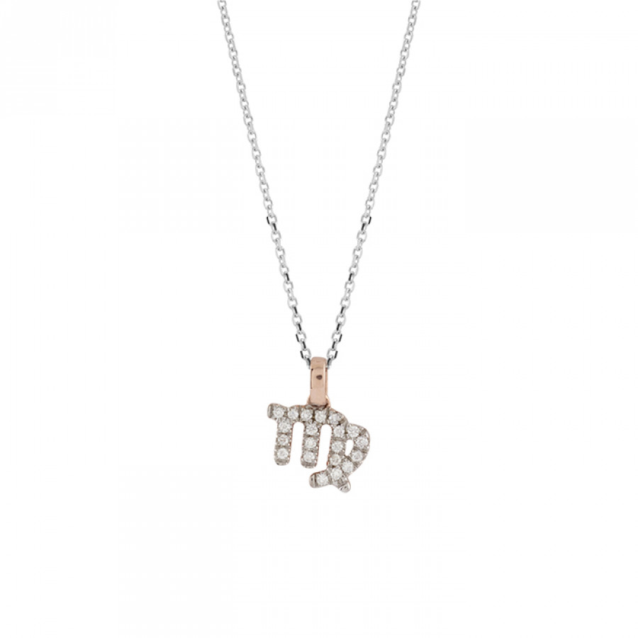 Collana I Segni Zodiacali Vergine oro bianco e rosa con diamanti