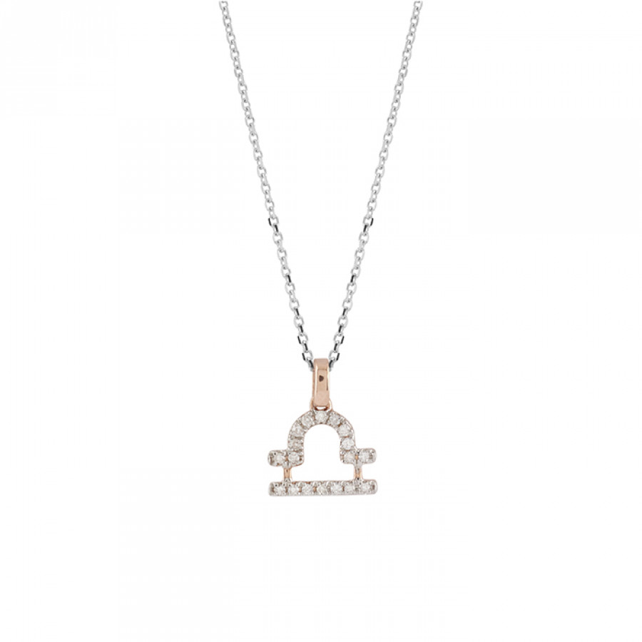 Collana Salvini Bilancia in oro bianco e rosa con diamanti, della collezione I Segni Zodiacali.
