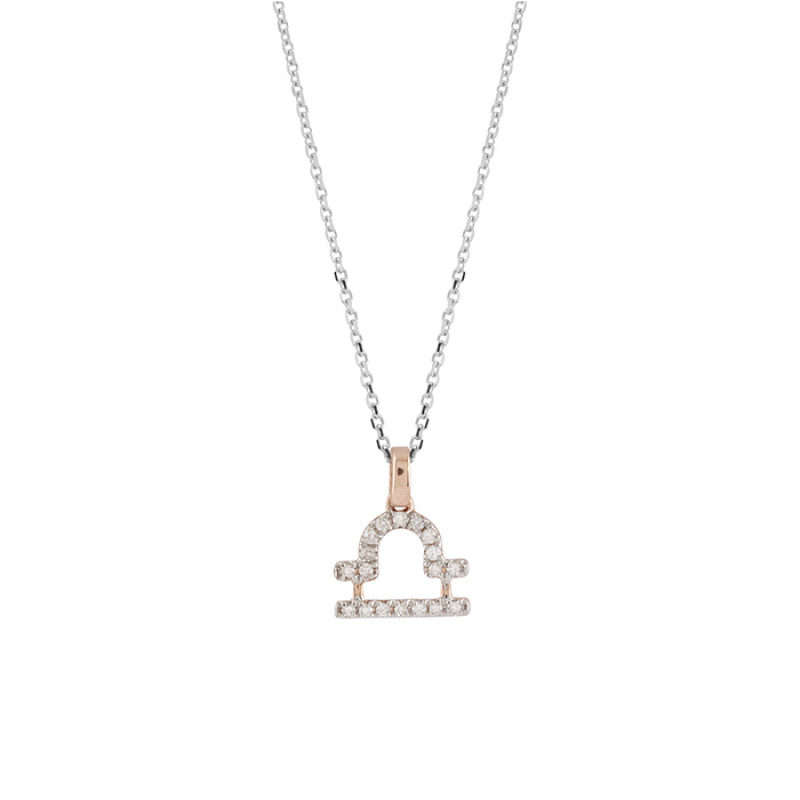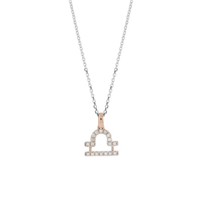 Collana I Segni Zodiacali Bilancia oro bianco e rosa con diamanti