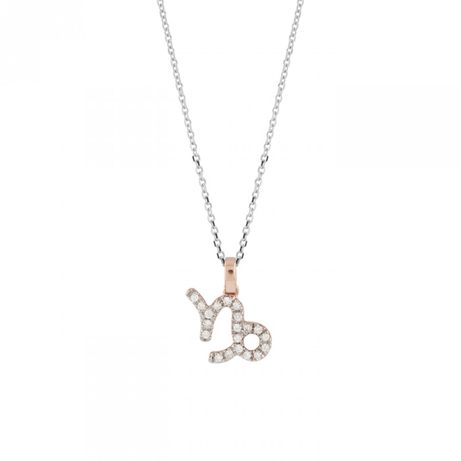 Collana I Segni Zodiacali Capricorno oro bianco e rosa con diamanti