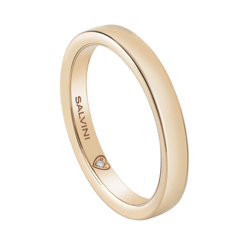 Fede nuziale in oro giallo con diamante, della collezione Battito di Salvini.