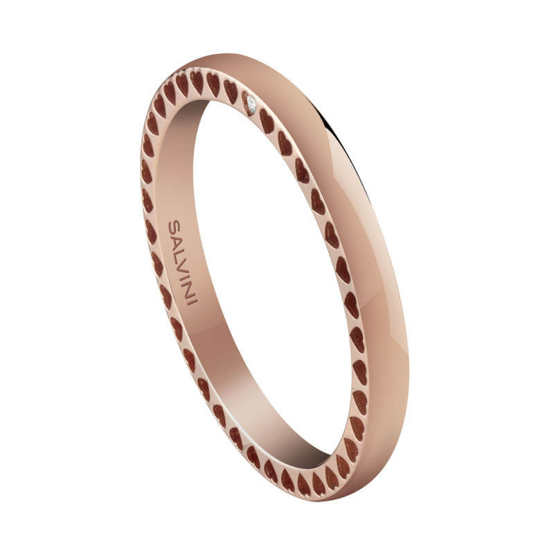 Fede nuziale in oro bianco con diamante, della collezione Passione di Salvini.