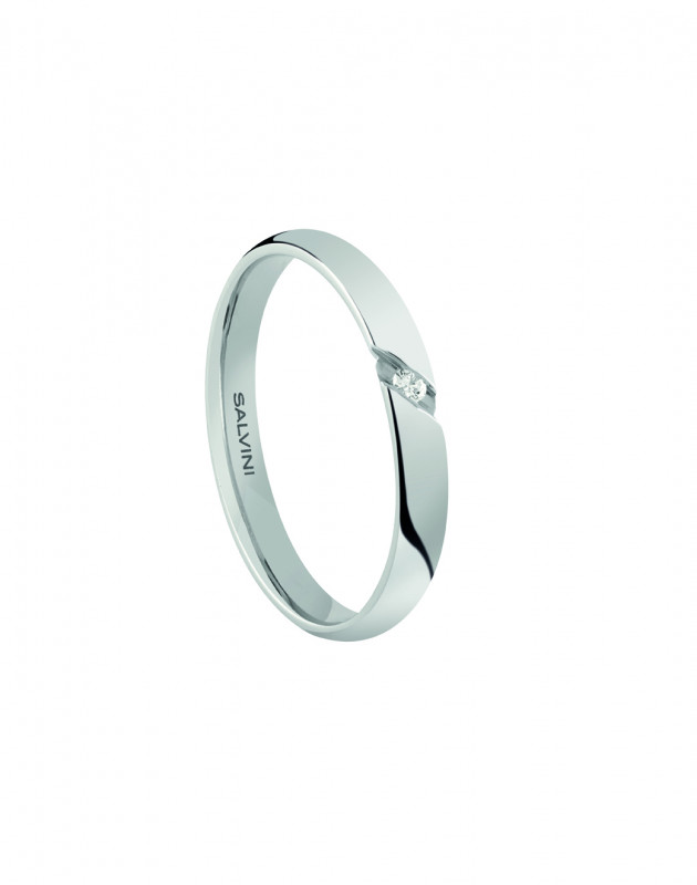 Fede nuziale in oro bianco e diamante, della collezione Special Day di Salvini.