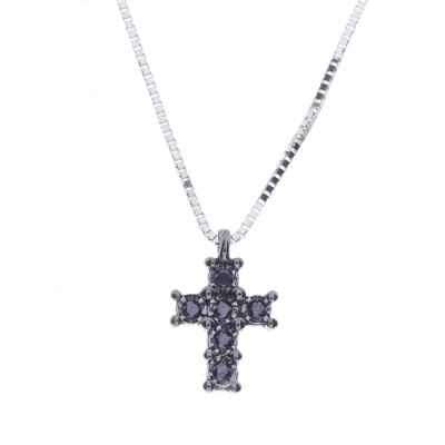 Collana Bliss croce in Oro bianco e Diamanti black linea Precious.