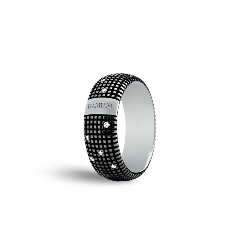 Fede nuziale in oro black con diamanti della collezione Metropolitan Dream di Damiani.