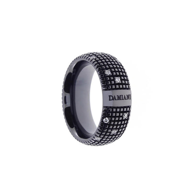Fede nuziale Damiani in oro black con diamanti bianchi e neri della collezione Metropolitan.