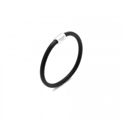 Questo bracciale in pelle liscia nera e argento di Giovanni Raspini racconta tutto il fascino del design minimale, con l'eleganza che questo materiale regala a ogni uomo. Fatto a mano in house.