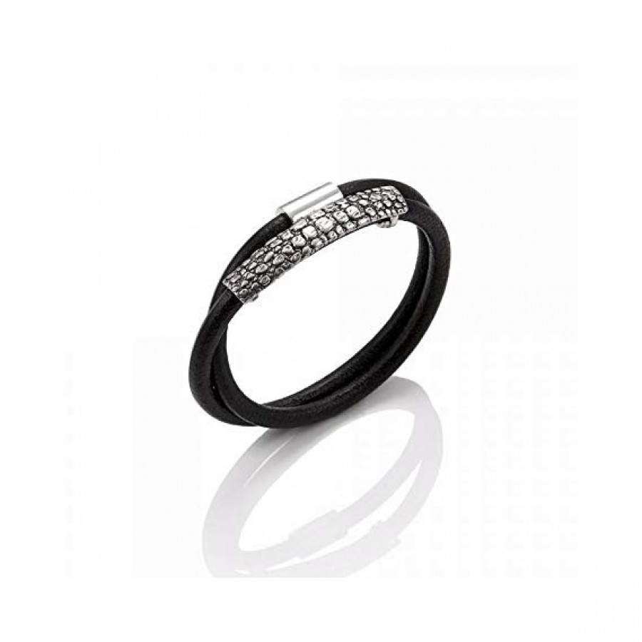 Tutta la forza animalier per un gioiello contemporaneo della collezione Uomo Giovanni Raspini. La texture coccodrillo, realizzata in argento brunito mediante l'antica tecnica della fusione a cera persa, impreziosisce questo bracciale in cuoio nero, essenziale ed elegante.