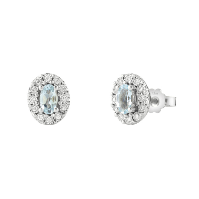 Orecchini Bliss in oro bianco con diamanti e acquamarina della collezione Stephanie