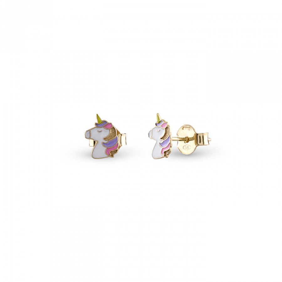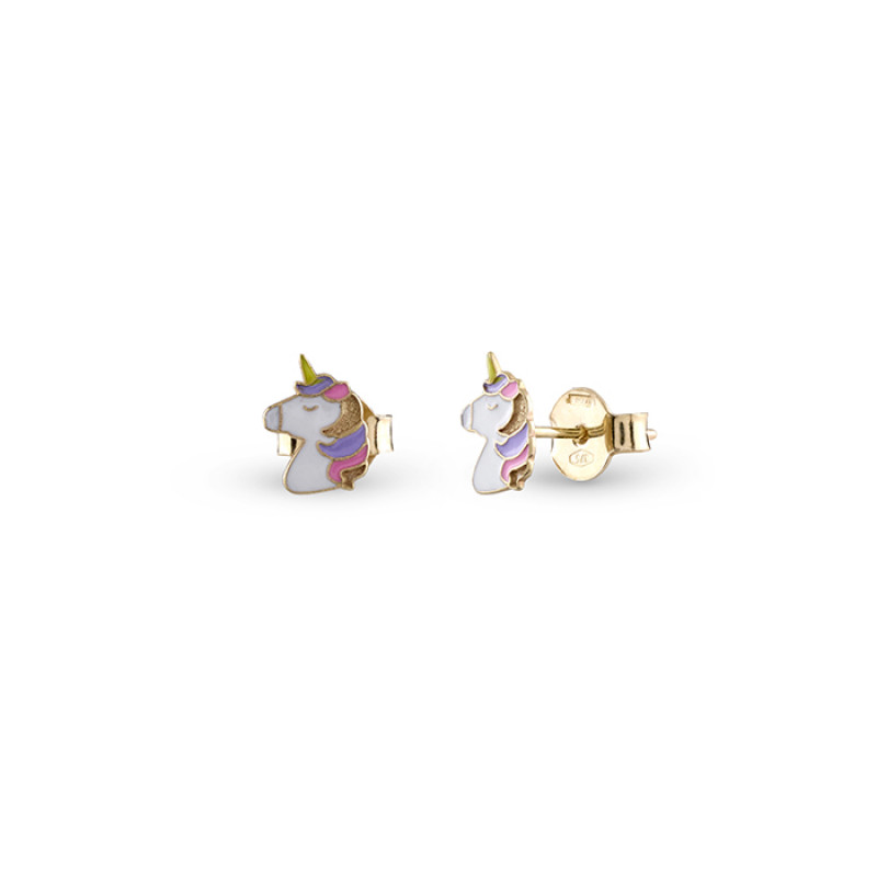 Orecchini Bliss Unicorno della collezione My Baby in oro giallo con smalto