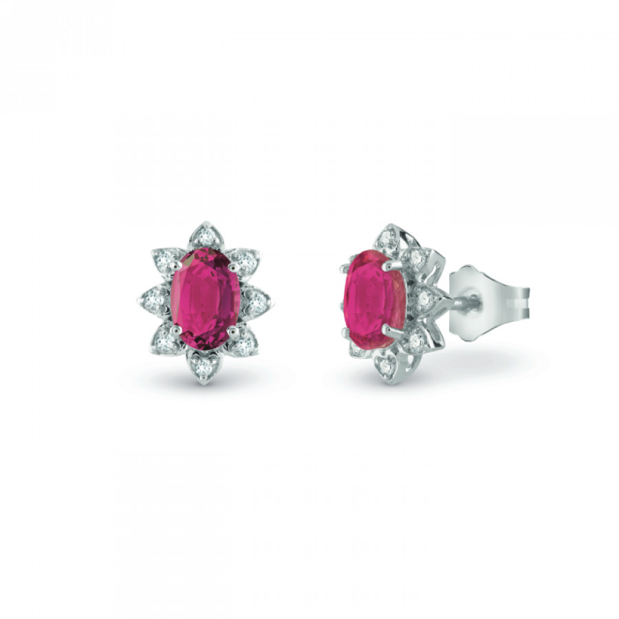 Orecchini Vittoria in oro bianco, brillanti e rubini