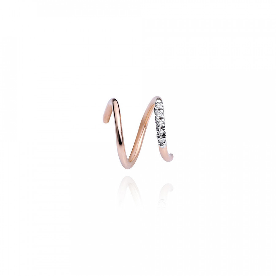 Orecchino singolo destro a spirale in oro rosa 18 kt e diamanti della collezione Linee ed Archi di Burato Gioielli.