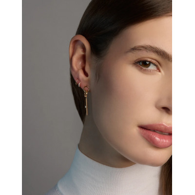 Un gioiello dal fascino magnetico: l’orecchino pendente in oro giallo 18 carati unisce cerchio e linea d’oro, simboli di connessione e modernità, racchiudendo al centro un diamante solitario che cattura la luce. Un design essenziale che riflette la forza della semplicità.