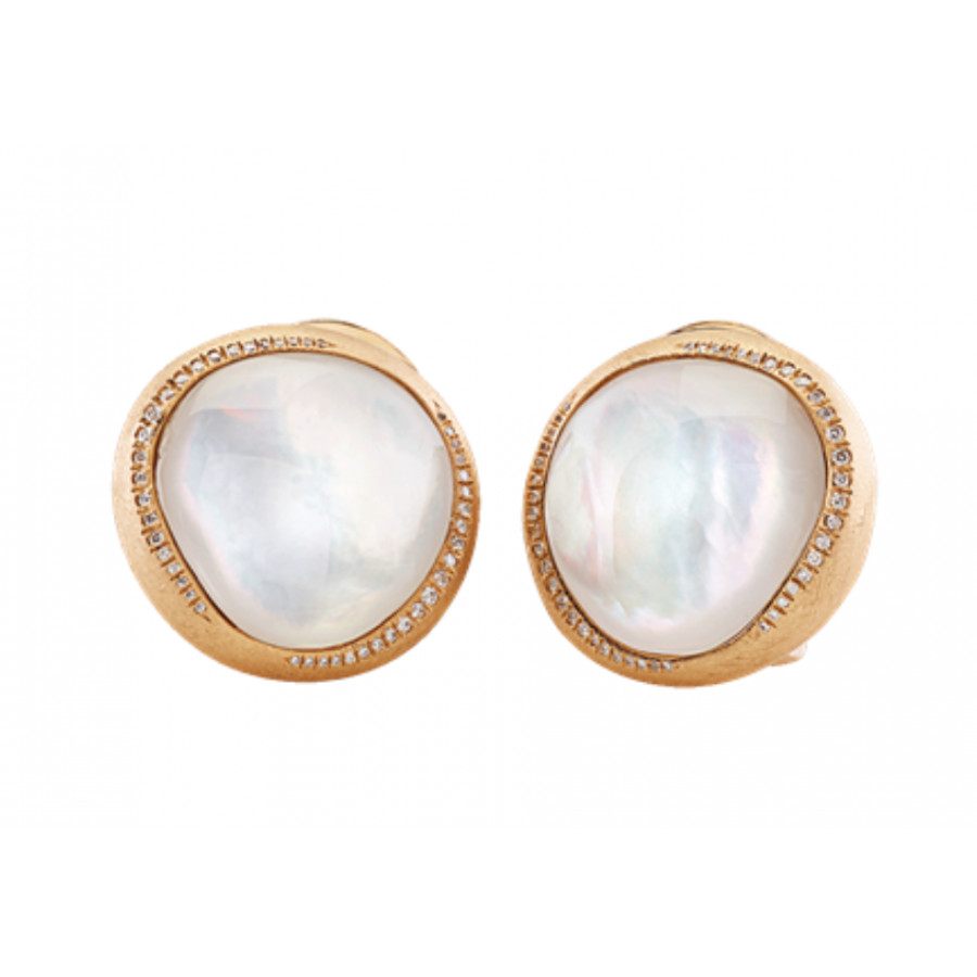 Orecchini Chantecler a lobo in oro giallo 18kt satinato, diamanti, madreperla e cristallo di rocca appartenente alla collezione Enchanté.