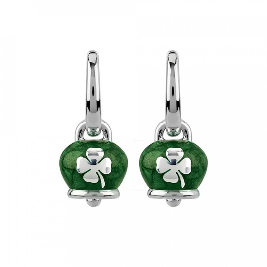 Orecchini Campanella micro con quadrifogli in argento e smalto verde perlato., appartenente alla collezione Et Voilà di Chantecler.