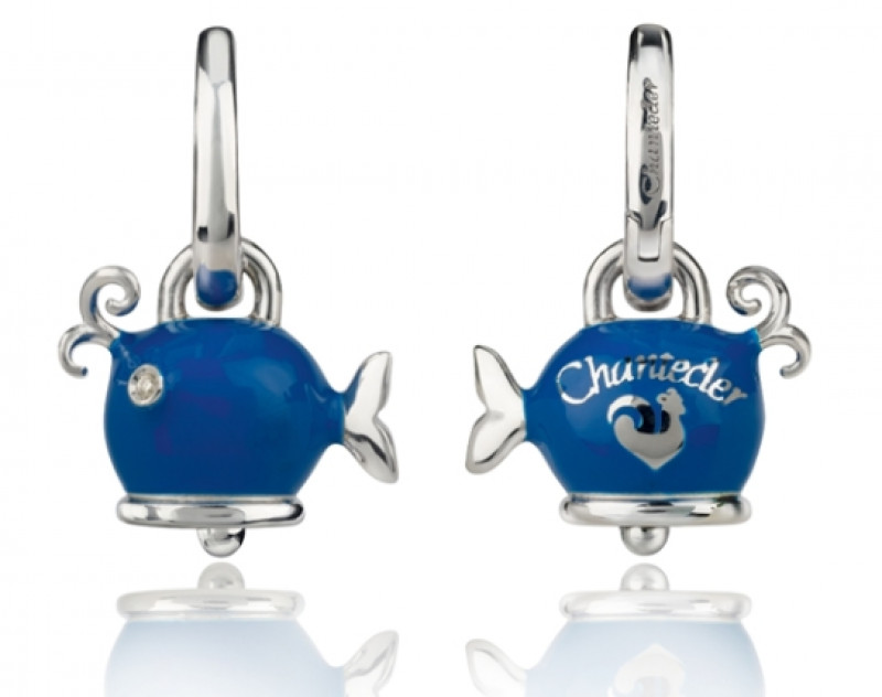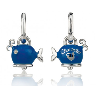Orecchini balena micro in argento, smalto blue e diamanti bianchi, appartenente alla collezione Et Voilà di Chantecler.