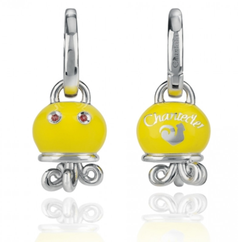 Orecchini polipo micro in argento, smalto giallo e zaffiri arancio, appartenente alla collezione Et Voilà di Chantecler.