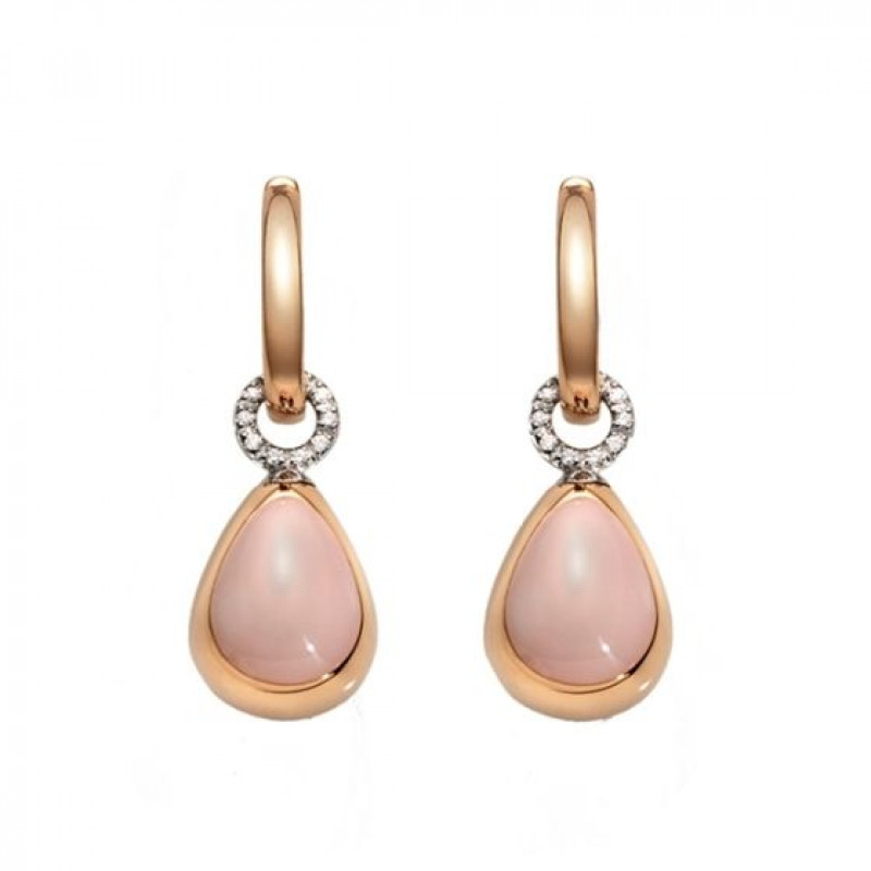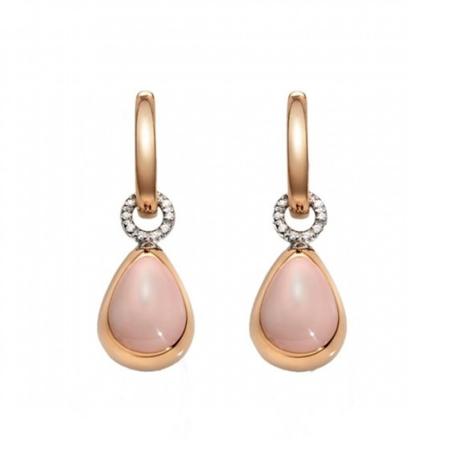 Orecchini piccoli, goccia in oro rosa lucido e inserto centrale in corallo rosa, biglierina solo oro, di Chantecler della collezione Capriful