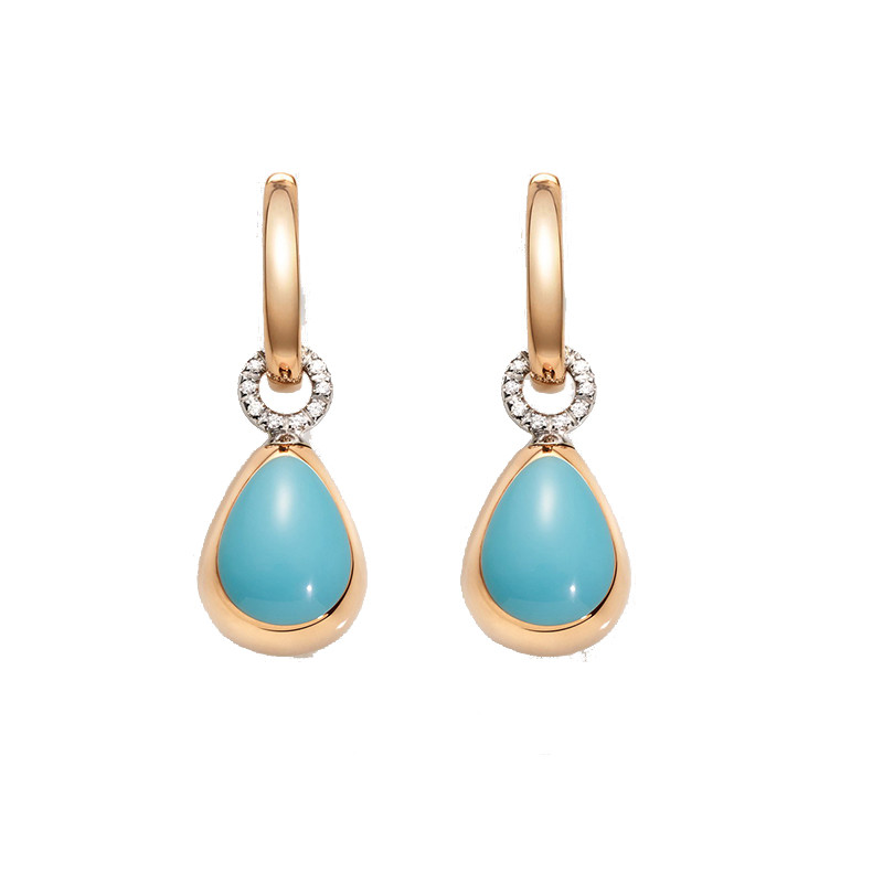 Orecchini piccoli, goccia in oro rosa lucido e inserto centrale turchese, biglierina solo oro, di Chantecler della collezione Capriful