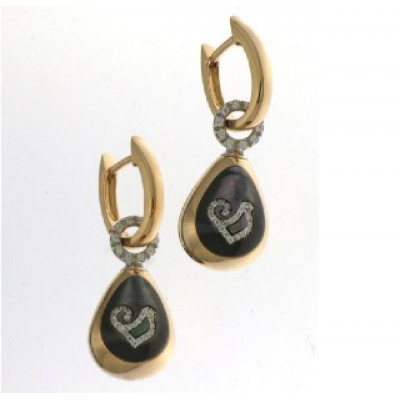 Orecchini piccoli, goccia in oro rosa lucido e inserto centrale madreprla grigia, biglierina solo oro, di Chantecler della collezione Capriful