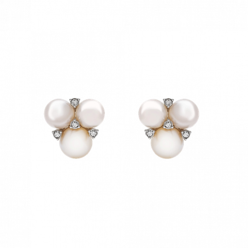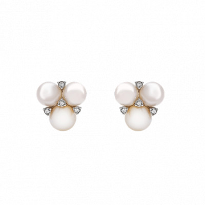 Orecchini Chantecler a lobo Cherie in oro bianco, perle e diamanti bianchi, appartenente alla collezione Cherie.