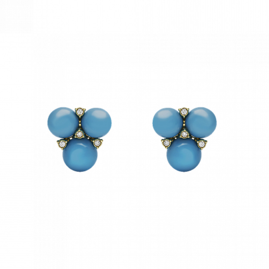 Orecchini Chantecler a lobo Cherie in oro giallo, turchese e diamanti bianchi, appartenente alla collezione Cherie.