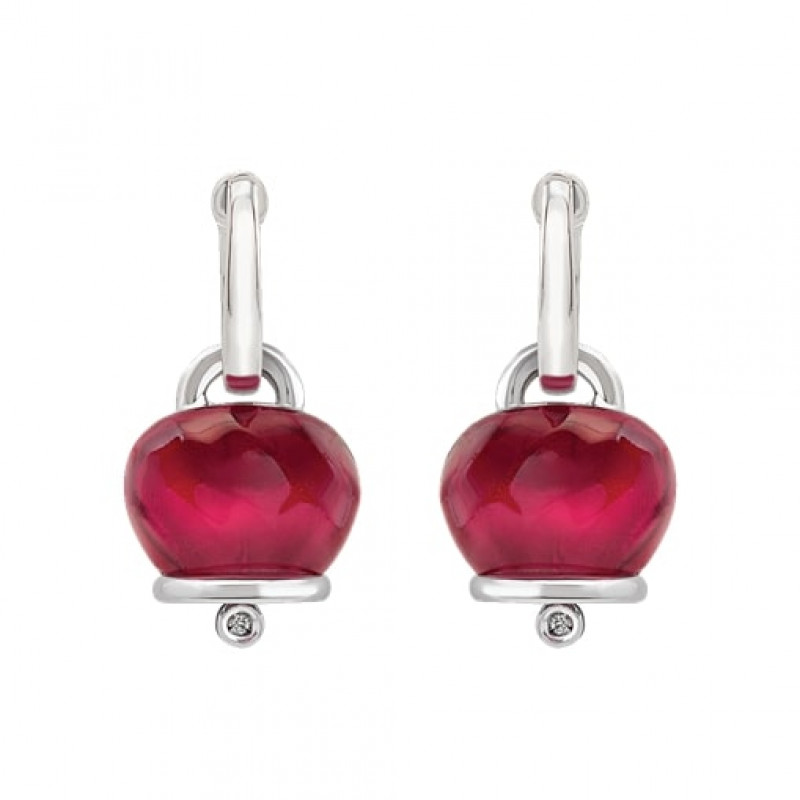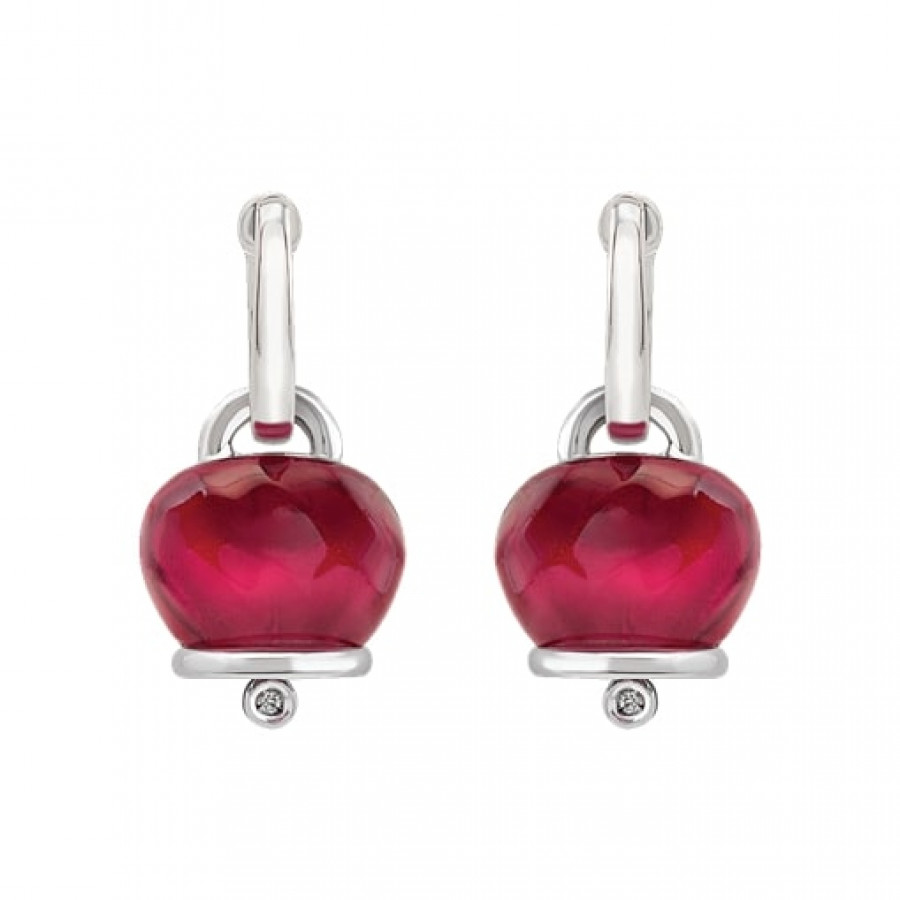 Orecchini Chantecler Campanelle piccoli in argento, rresina sfaccettata a mano color borgogna e due diamanti, appartenente alla collezione Et Voilà.
