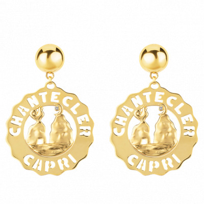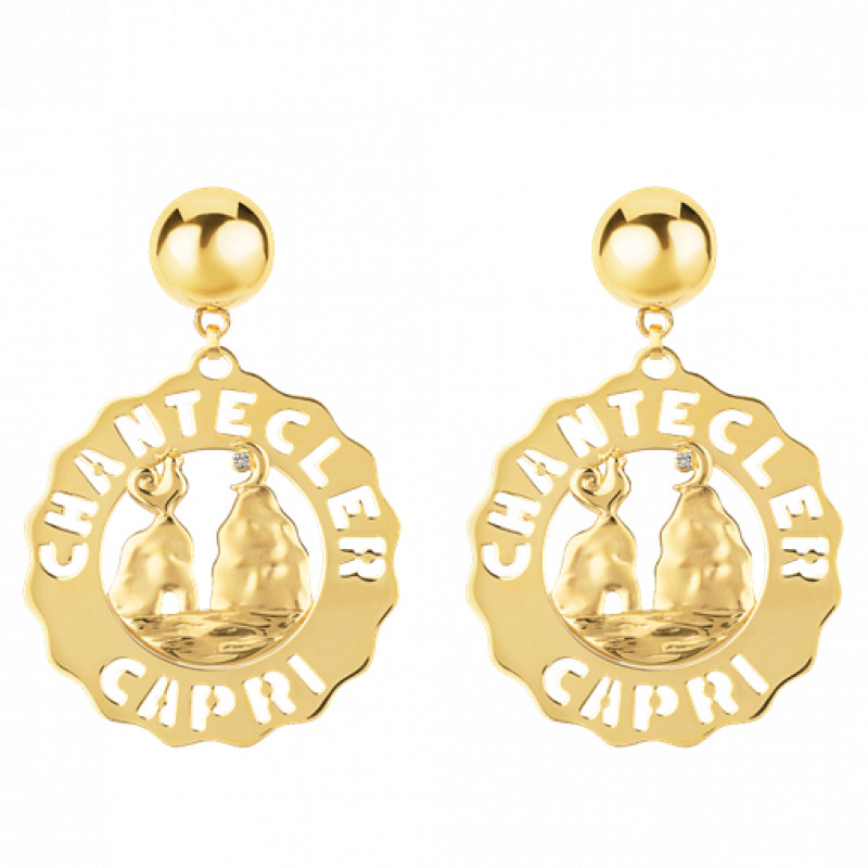 Orecchini Chantecler grandi in oro giallo 18k e diamante collezione Logo con Faraglioni.