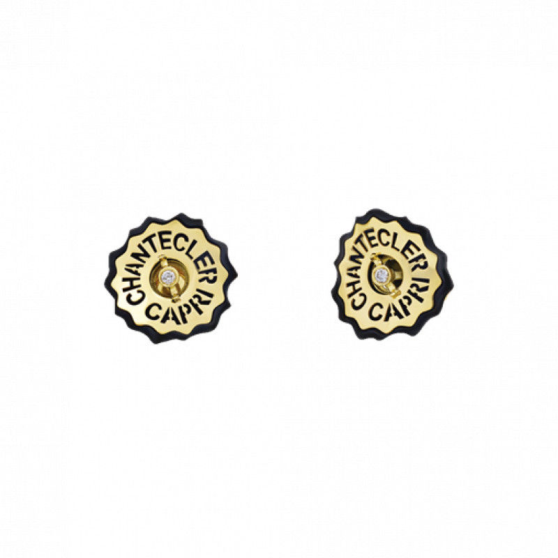 Orecchini Chantecler a lobo in oro giallo 18Kt, diamanti taglio brillante e resina nera opaca - Logo 14mm - della collezione Logo.