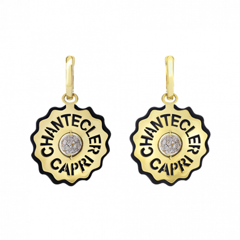 Orecchini Chantecler in oro giallo 18Kt, pavé di diamanti taglio brillante e resina nera opaca - Logo 25 mm - della collezione Logo.