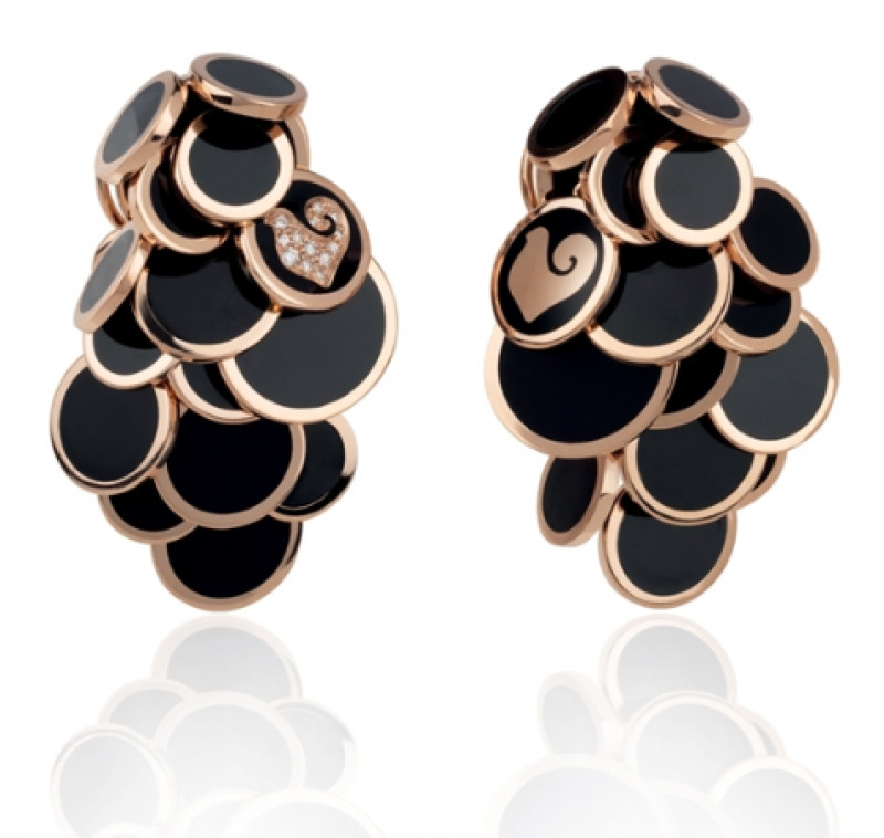 Orecchini Chantecler in oro rosa, diamanti e smalto nero
