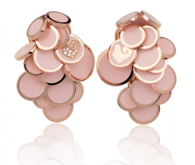 Orecchini Chantecler in oro rosa, diamanti e smalto rosa