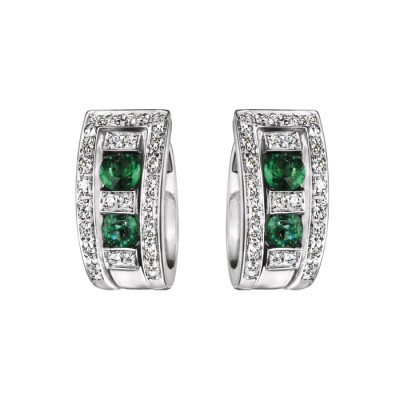 Orecchini Damiani in oro bianco con diamanti e smeraldi della collezione Belle Epoque
