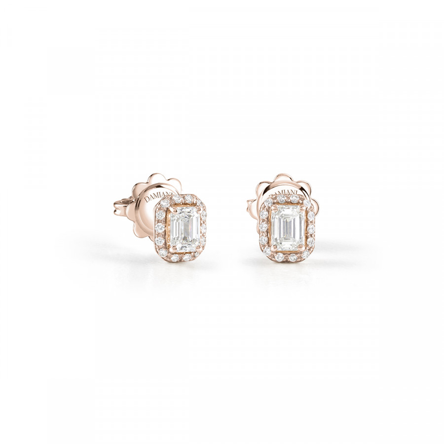 Orecchini Damiani Minou in oro rosa con diamante taglio smeraldo 0,74 ct.