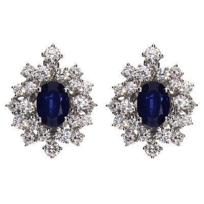 Orecchini Damiani in oro bianco, diamanti 1,9 ct Gh e zaffiri 1.6 ct collezione Mimosa.