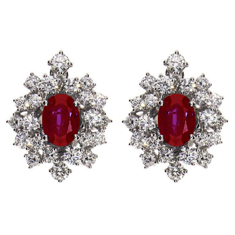 Orecchini Damiani in oro bianco, diamanti 1.9 ct Gh e rubini 2.2 ct collezione Mimosa.