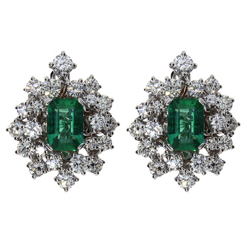 Orecchini Mimosa in oro bianco con diamanti e smeraldi