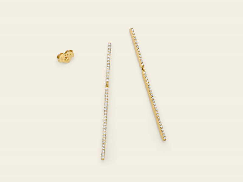 Orecchini Marco Gerbella pendenti Barrette in oro giallo con diamanti della collezione Piccole Gioie.