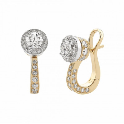 Giorgio Visconti orecchini solitario in oro bianco e rosa, diamante taglio brillante e contorno incassato a pavé.