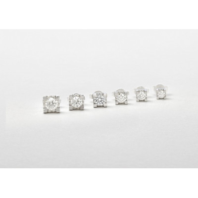 Giorgio Visconti Orecchini solitario in oro bianco con diamante taglio brillante centrale e contorno di diamanti taglio brillante.