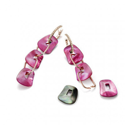 Orecchini in oro rosa e tre pezzi colorati intercambiabili di Mattioli della collezione Puzzle